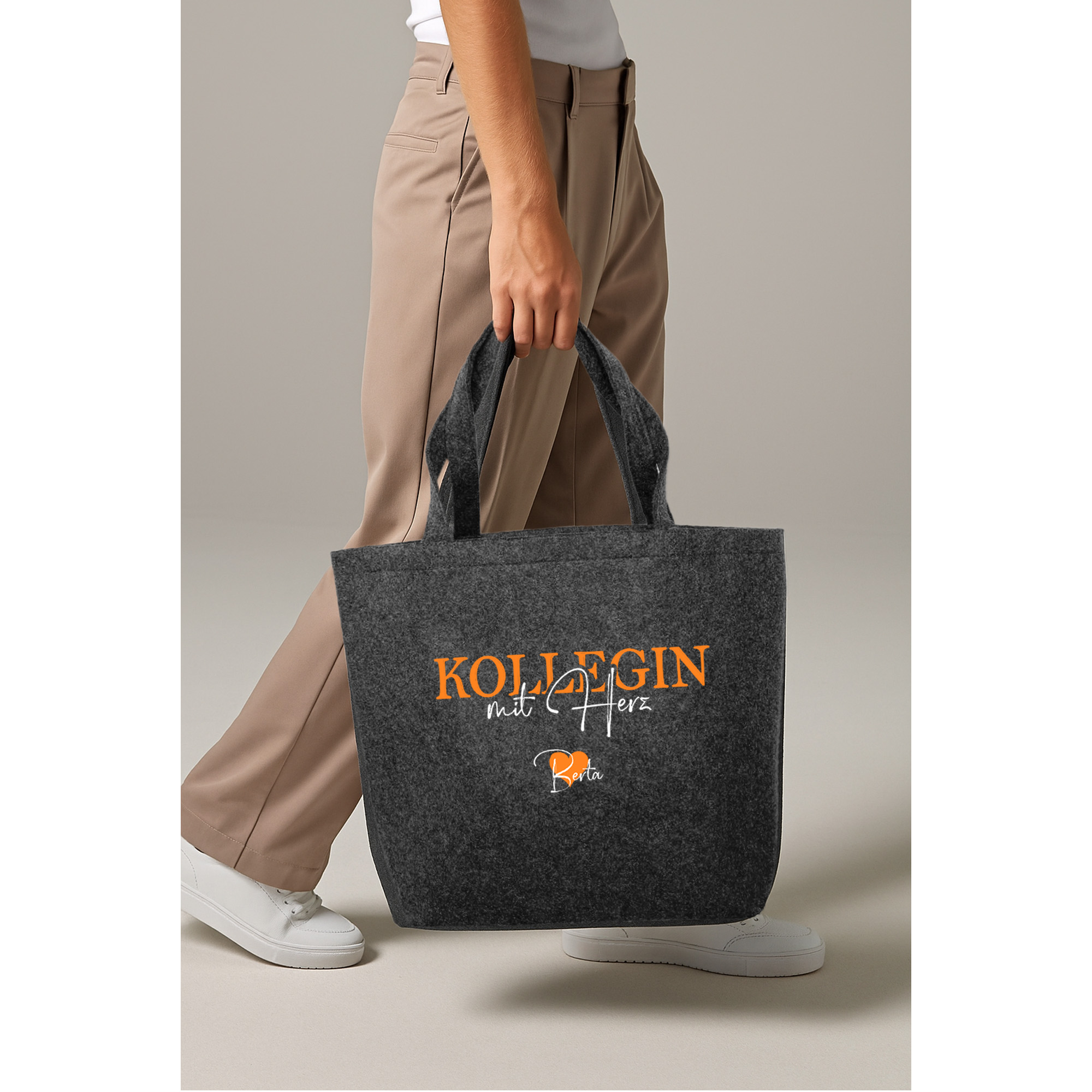 Filztasche grautöne nachhaltiger Shopper inkl. Innentasche | "Kollegin mit Herz"