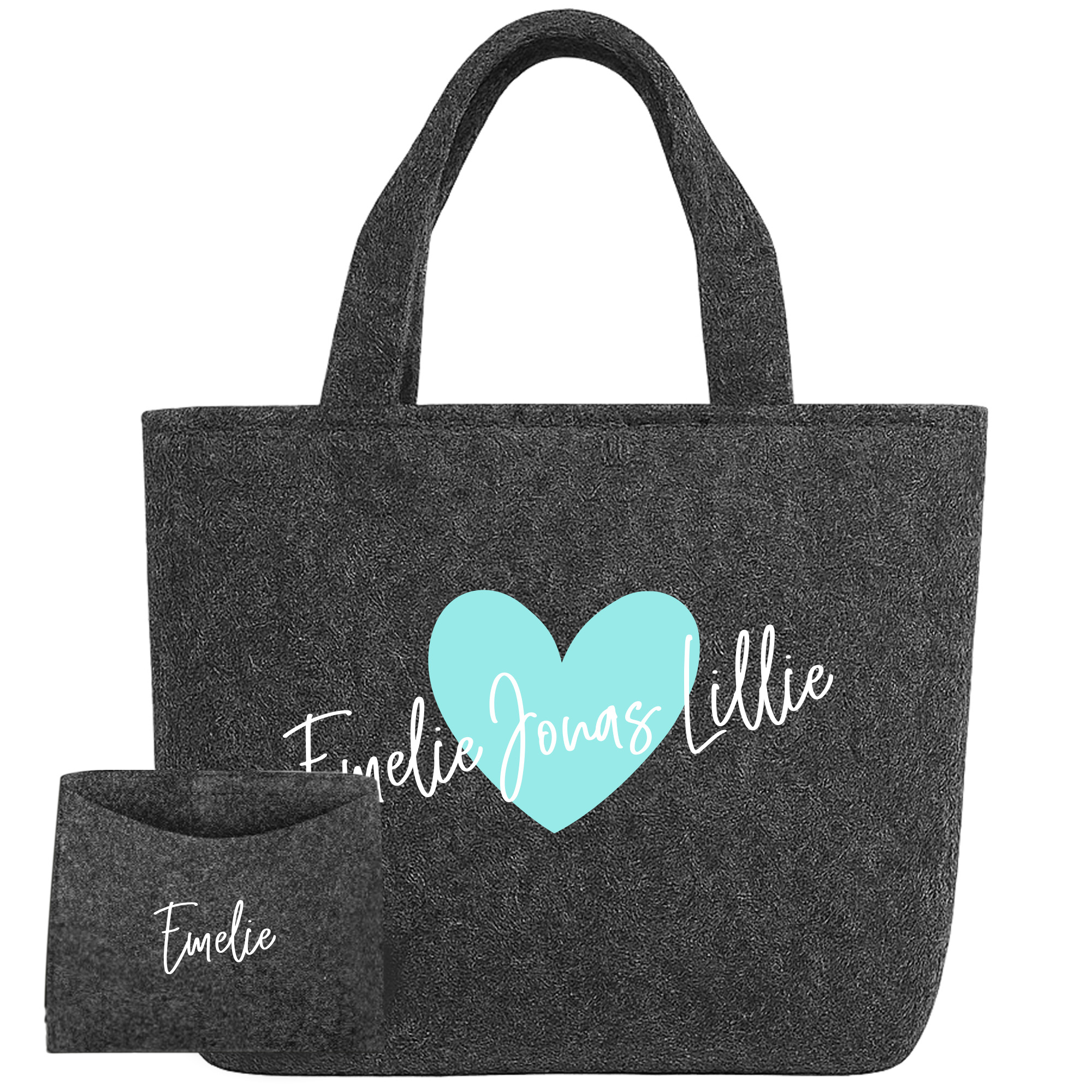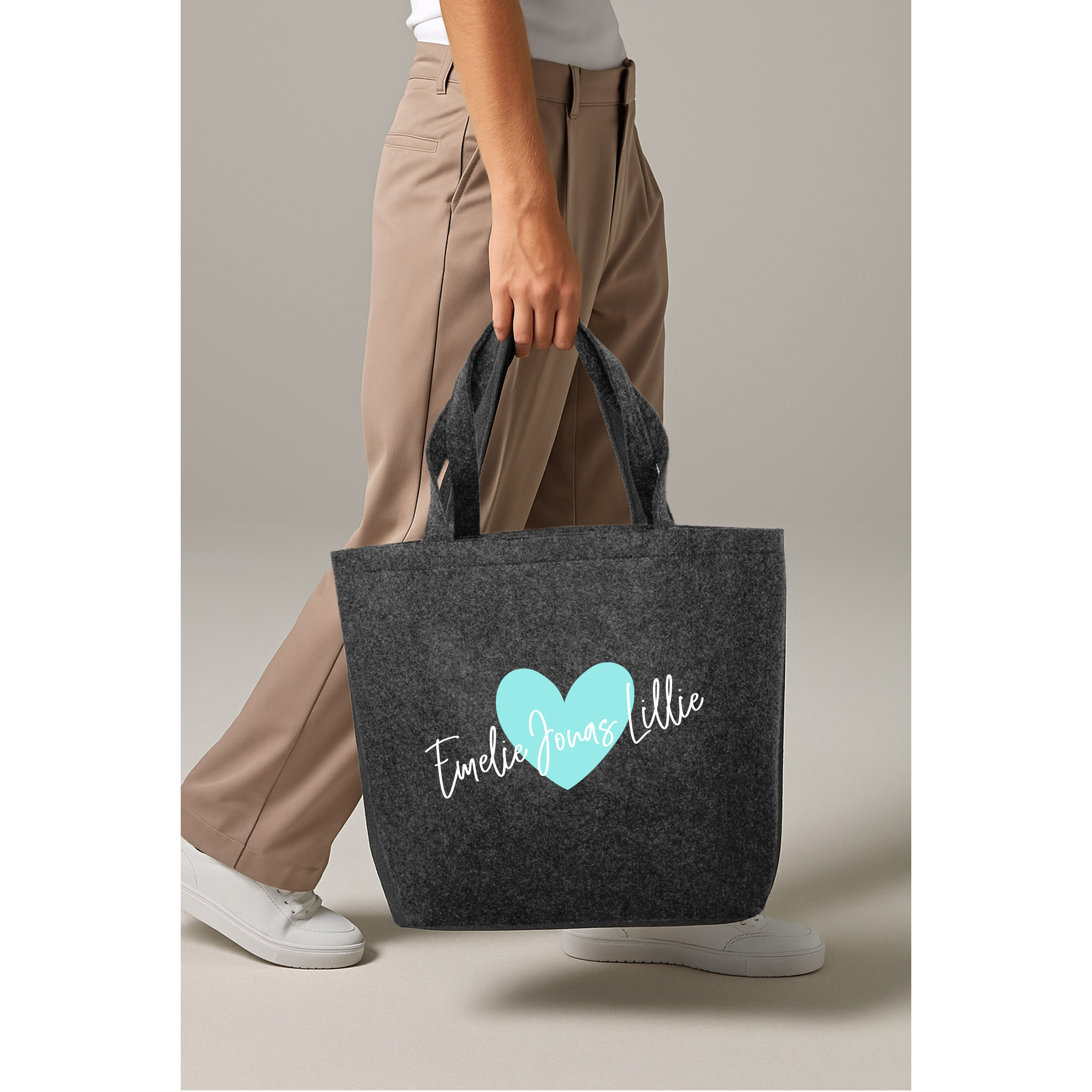 Filztasche nachhaltiger Shopper inkl. Innentasche Geschenk | Herz-Wunschname personalisiert