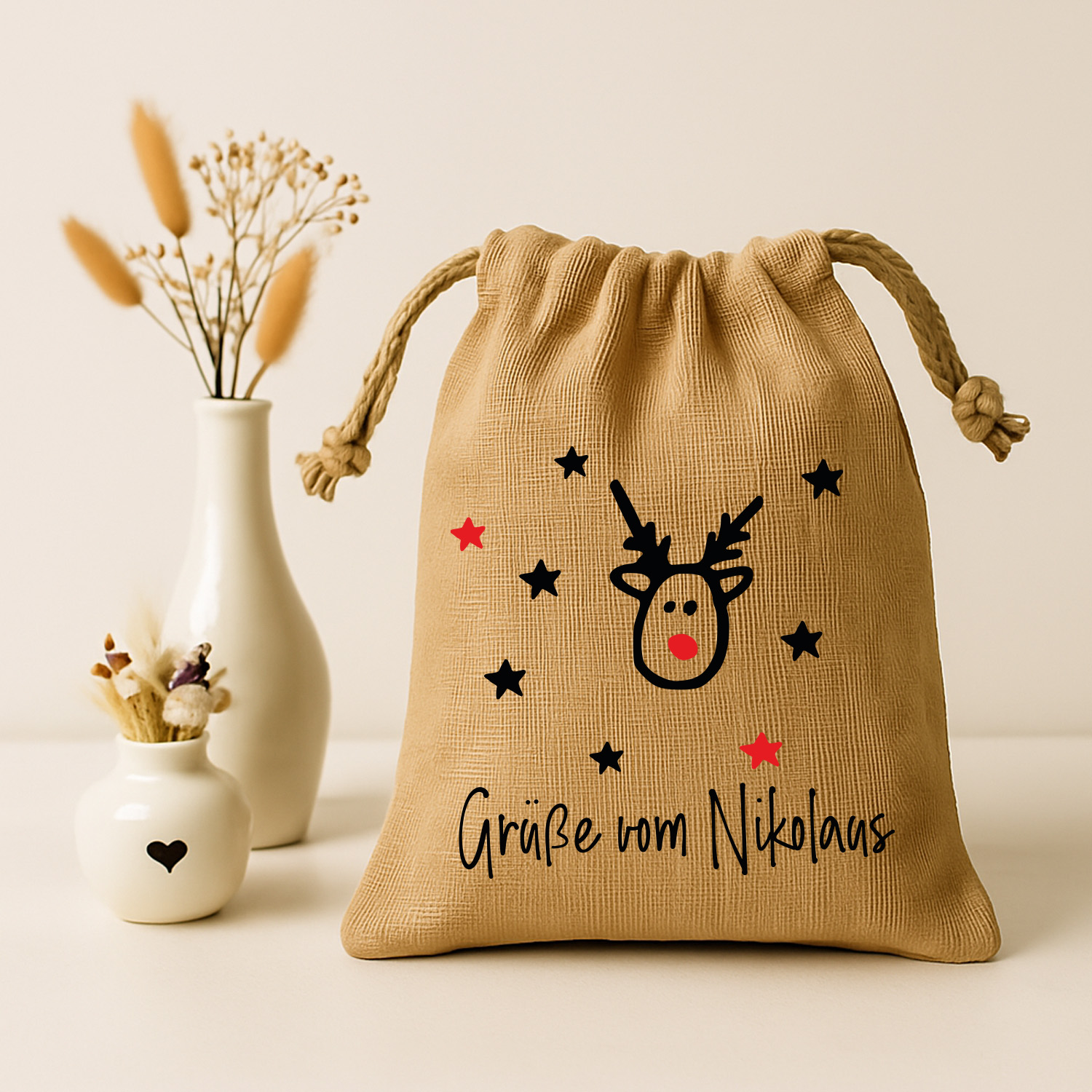 Jute-Nikolaussäckchen Motiv Rentier in 3 Größen | S - L