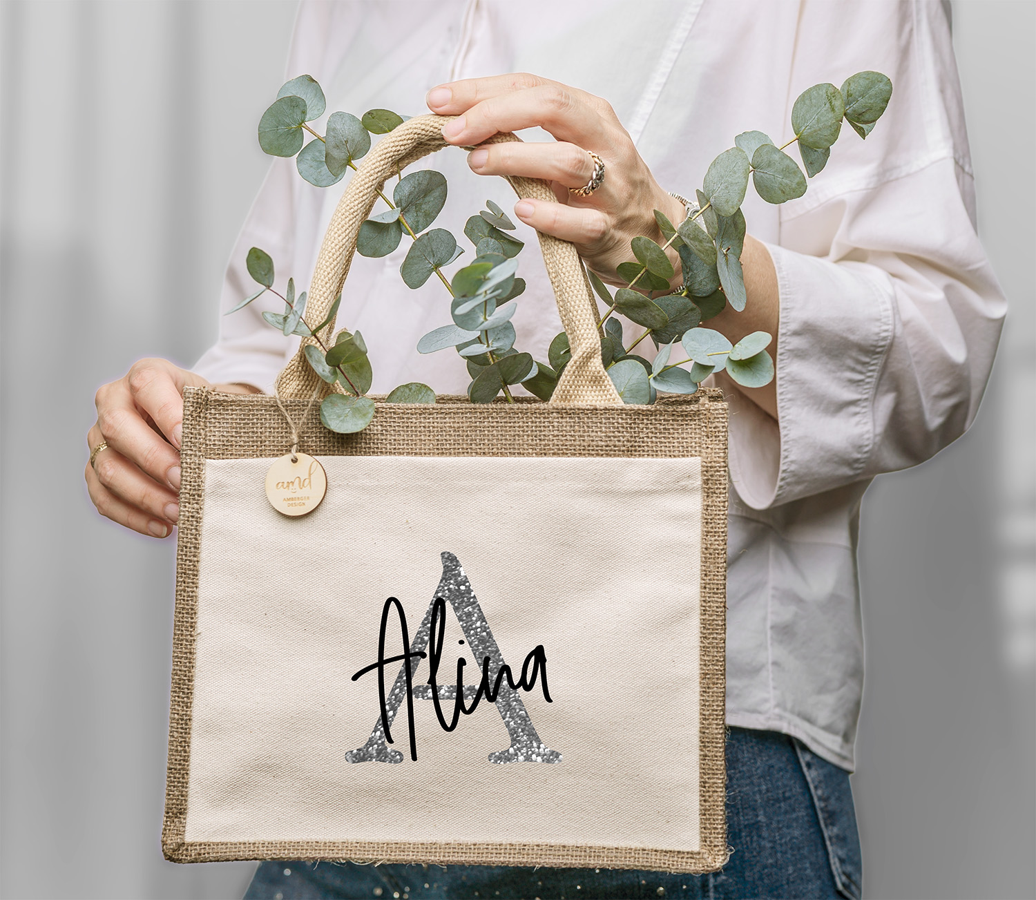 Personalisierte Jute-Tasche „Name & Initial“ – Wunschname & Initialen