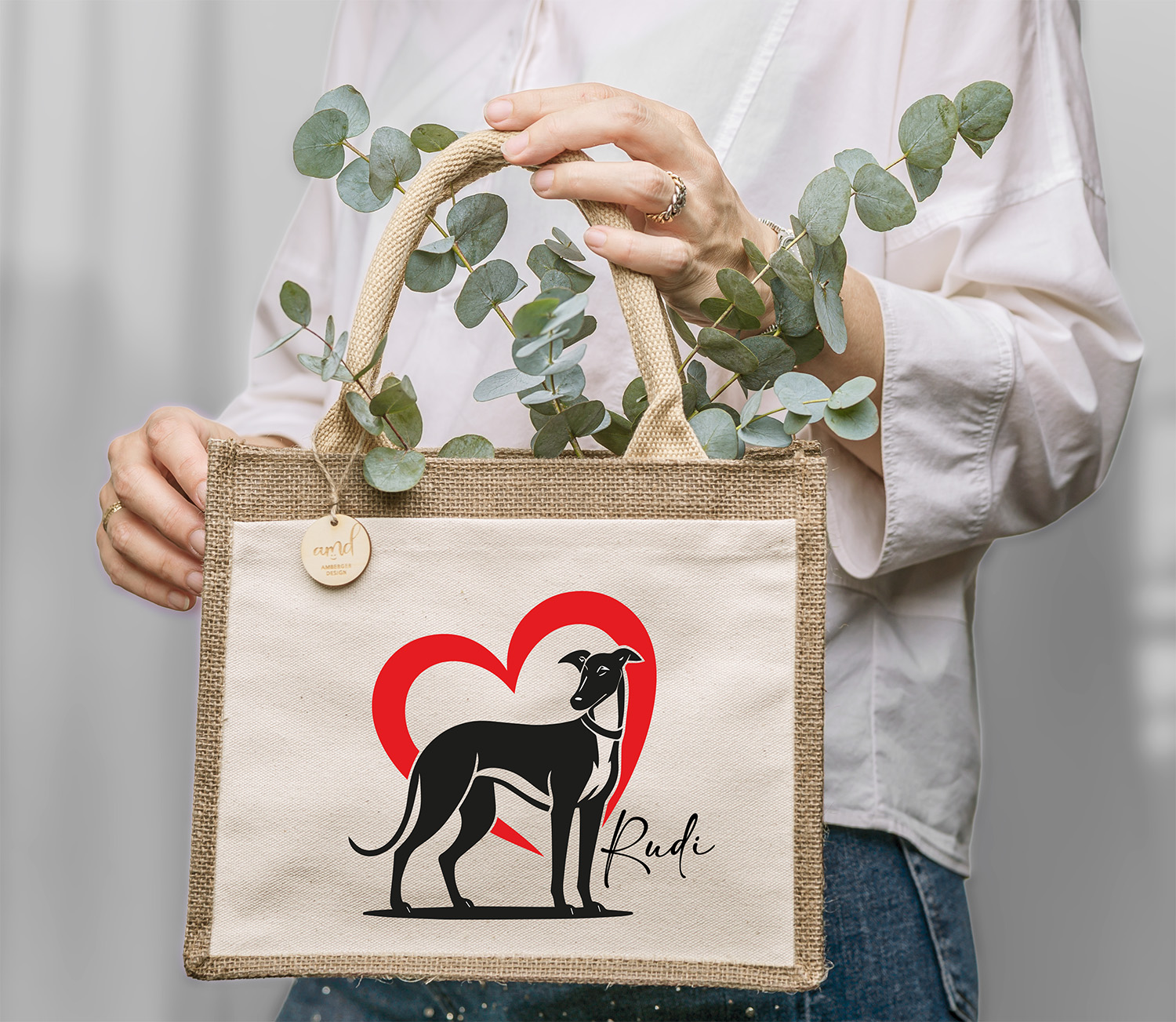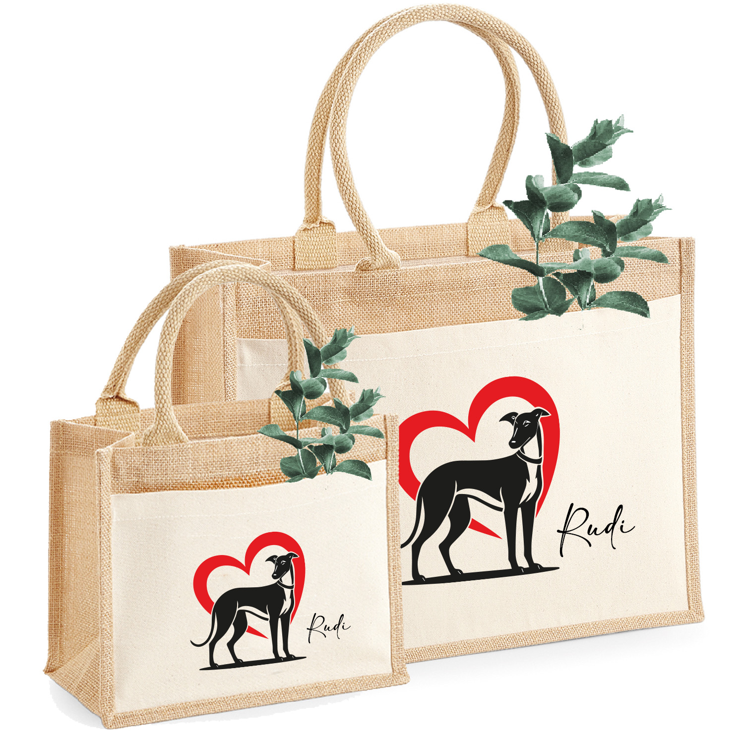 Personalisierte Jute-Tasche „Windhund – Freunde aufgepasst“ – Wunschname