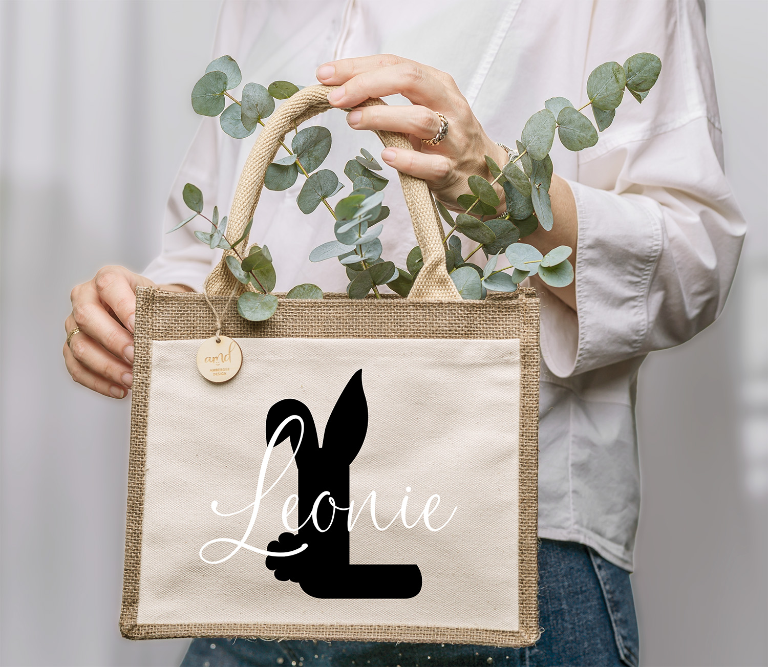 Personalisierte Ostertasche mit Initiale, Hase & Name – Jute Tasche Kinder