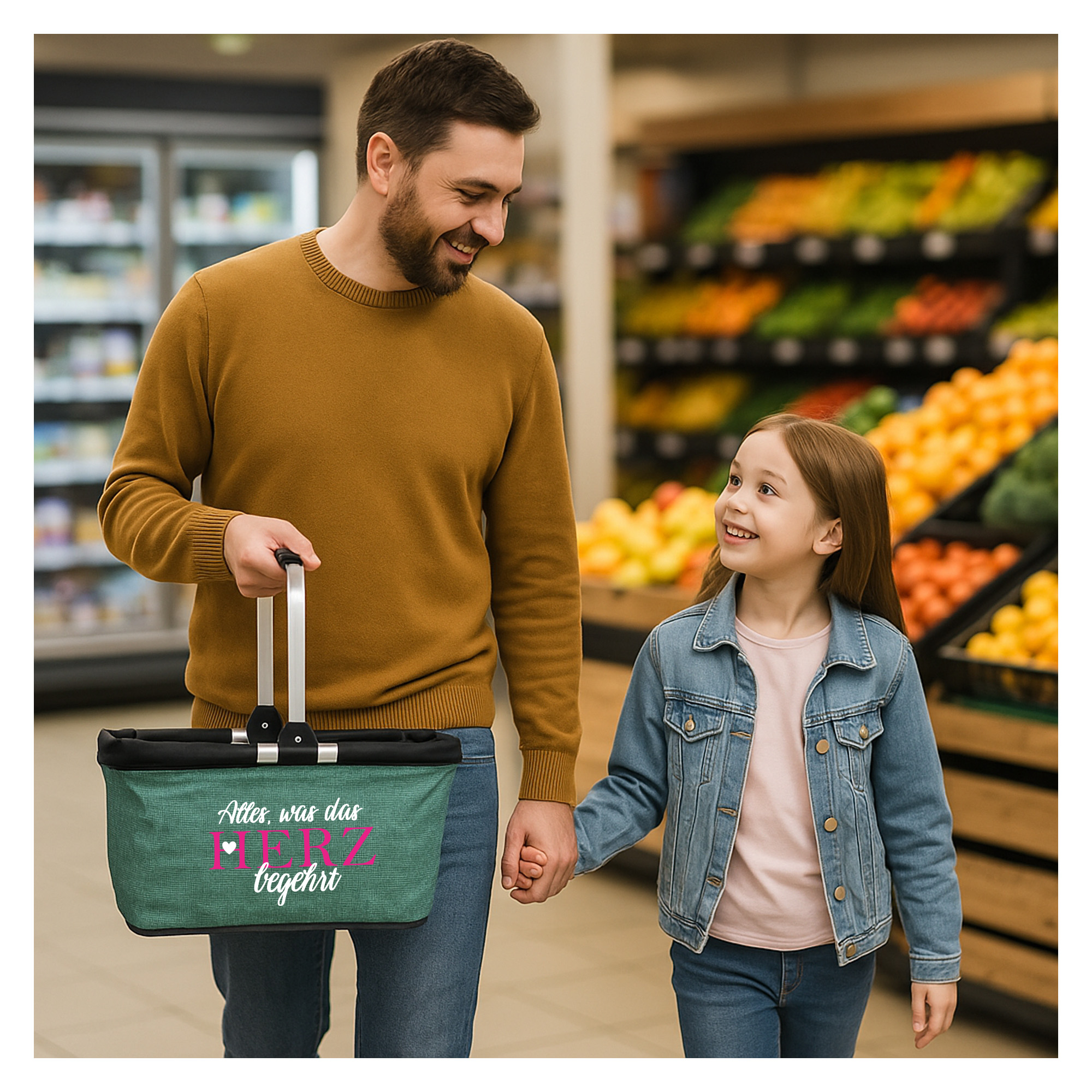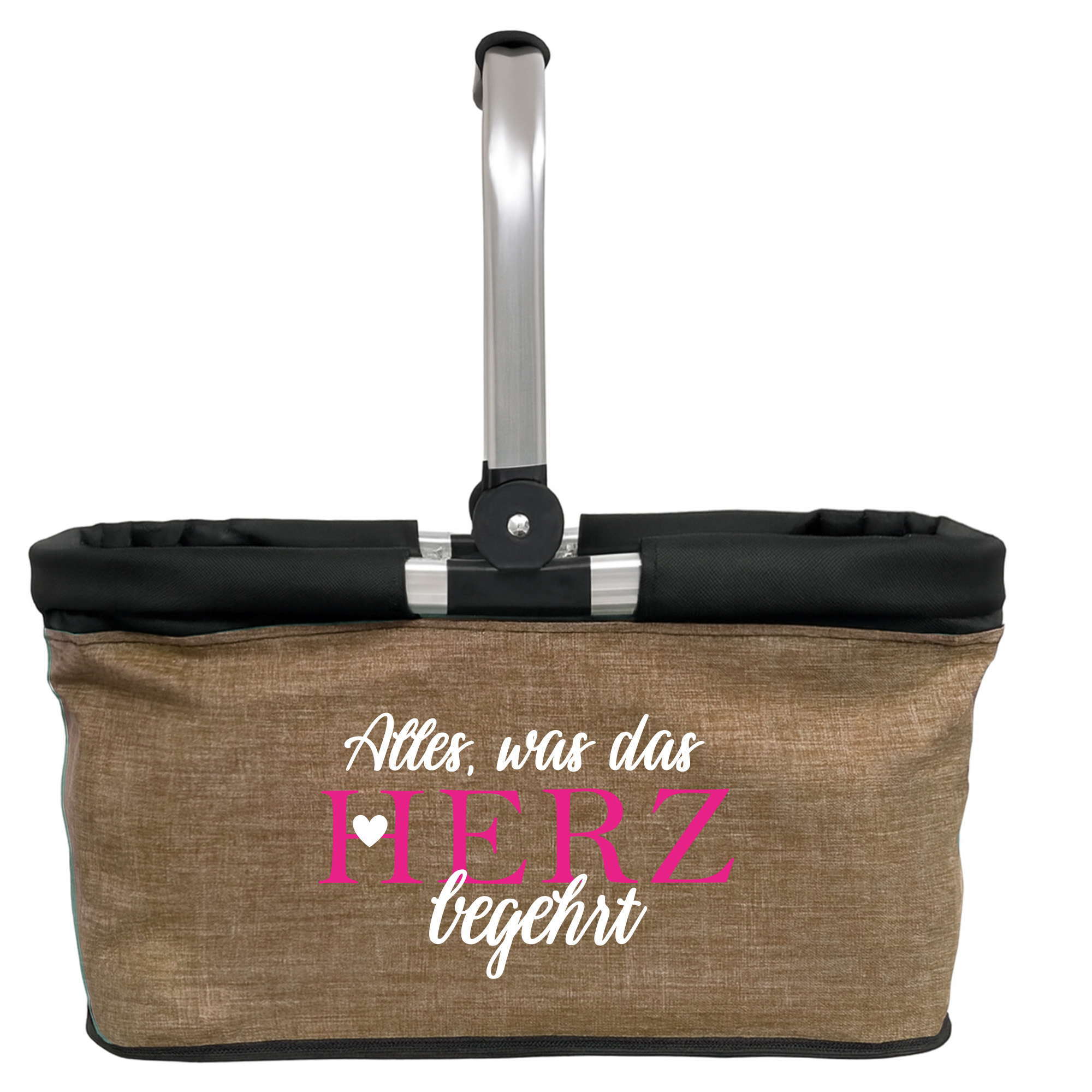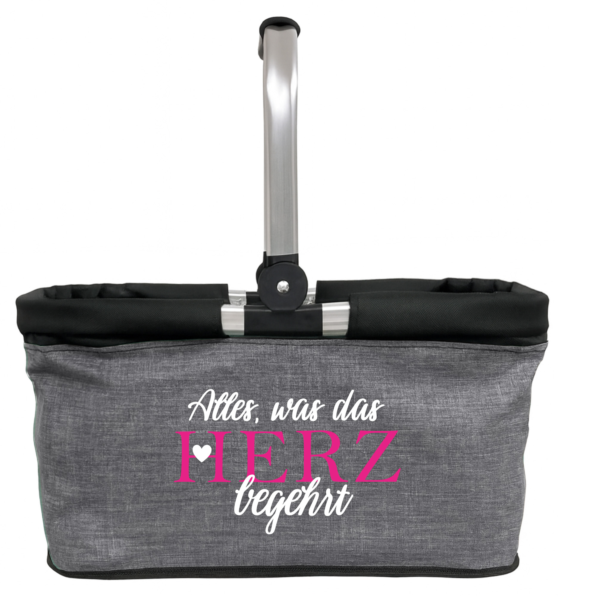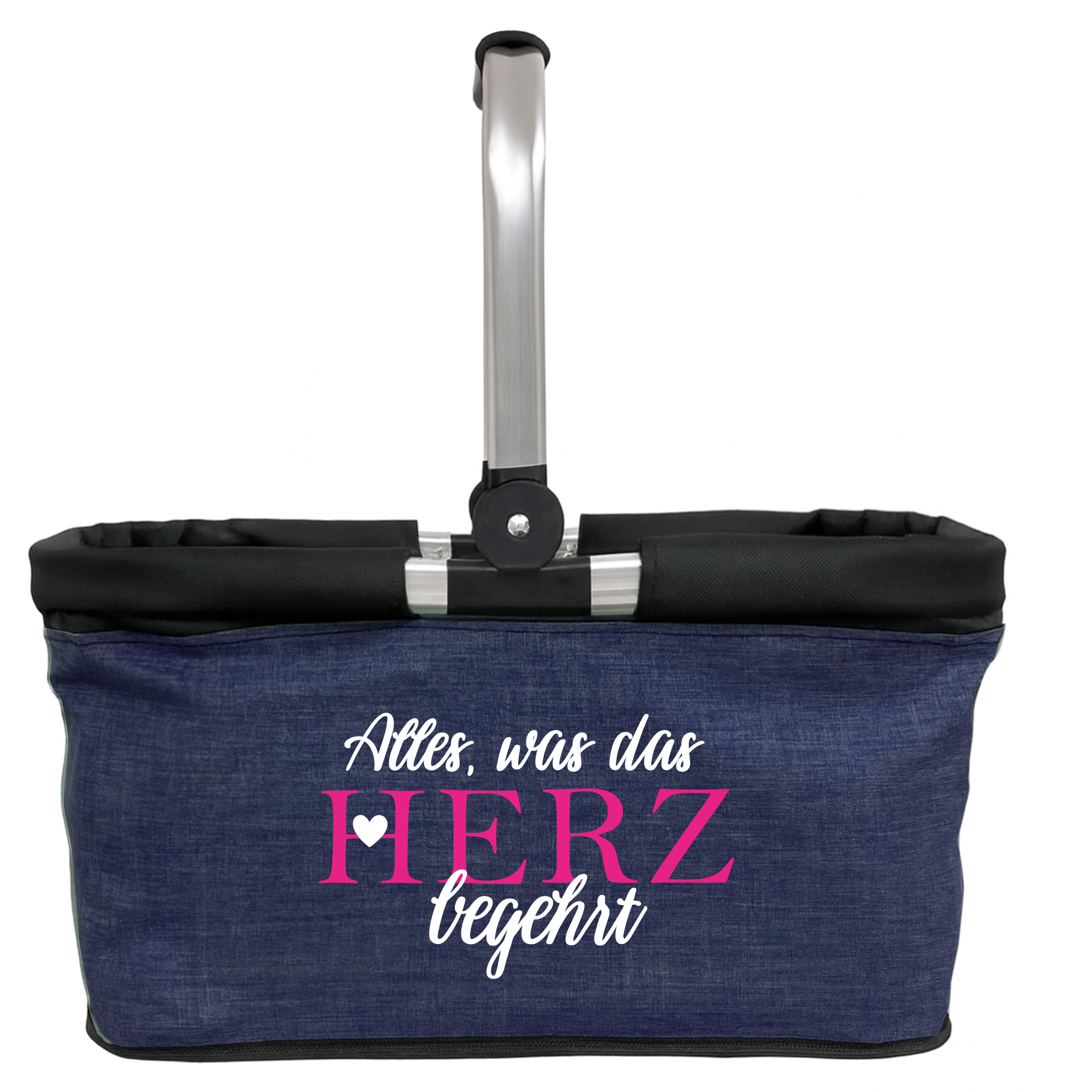 Produktbeschreibung "Personalisierter Einkaufskorb "Alles, was das Herz begehrt" Tragekorb Picknickkorb faltbar 20L"