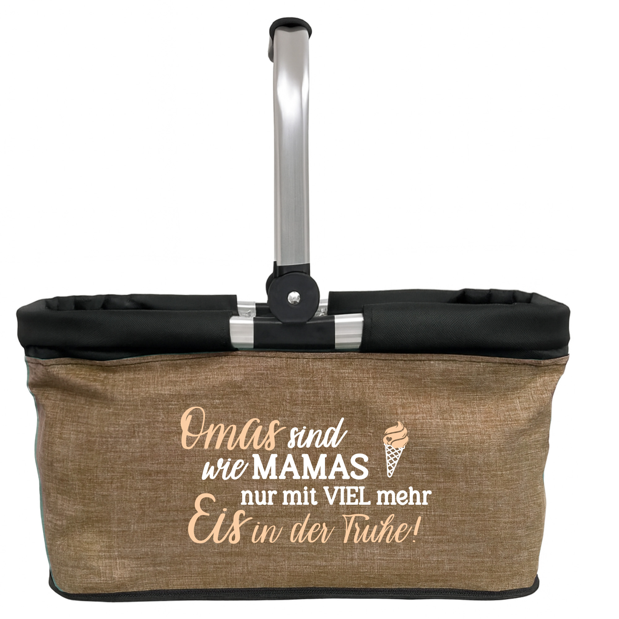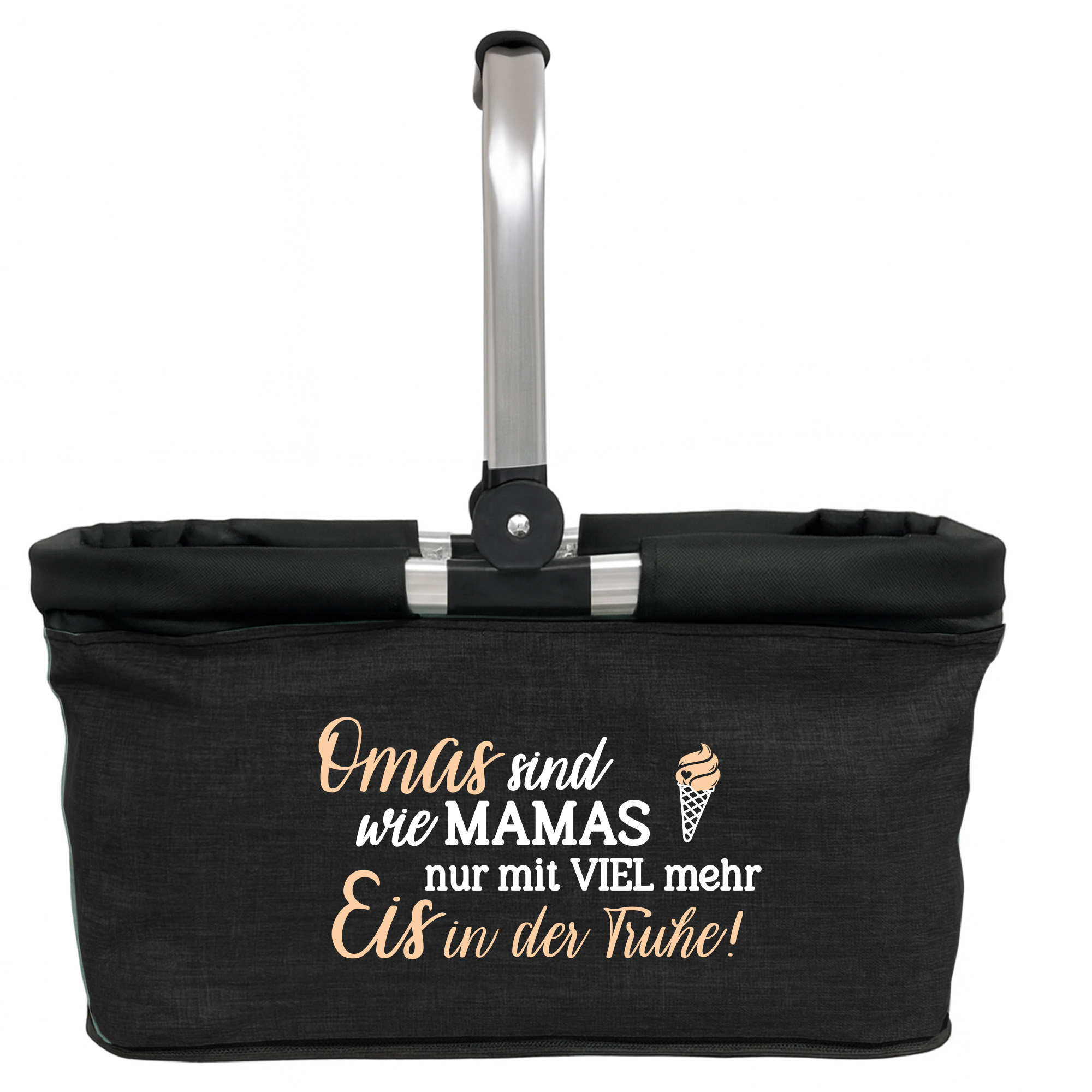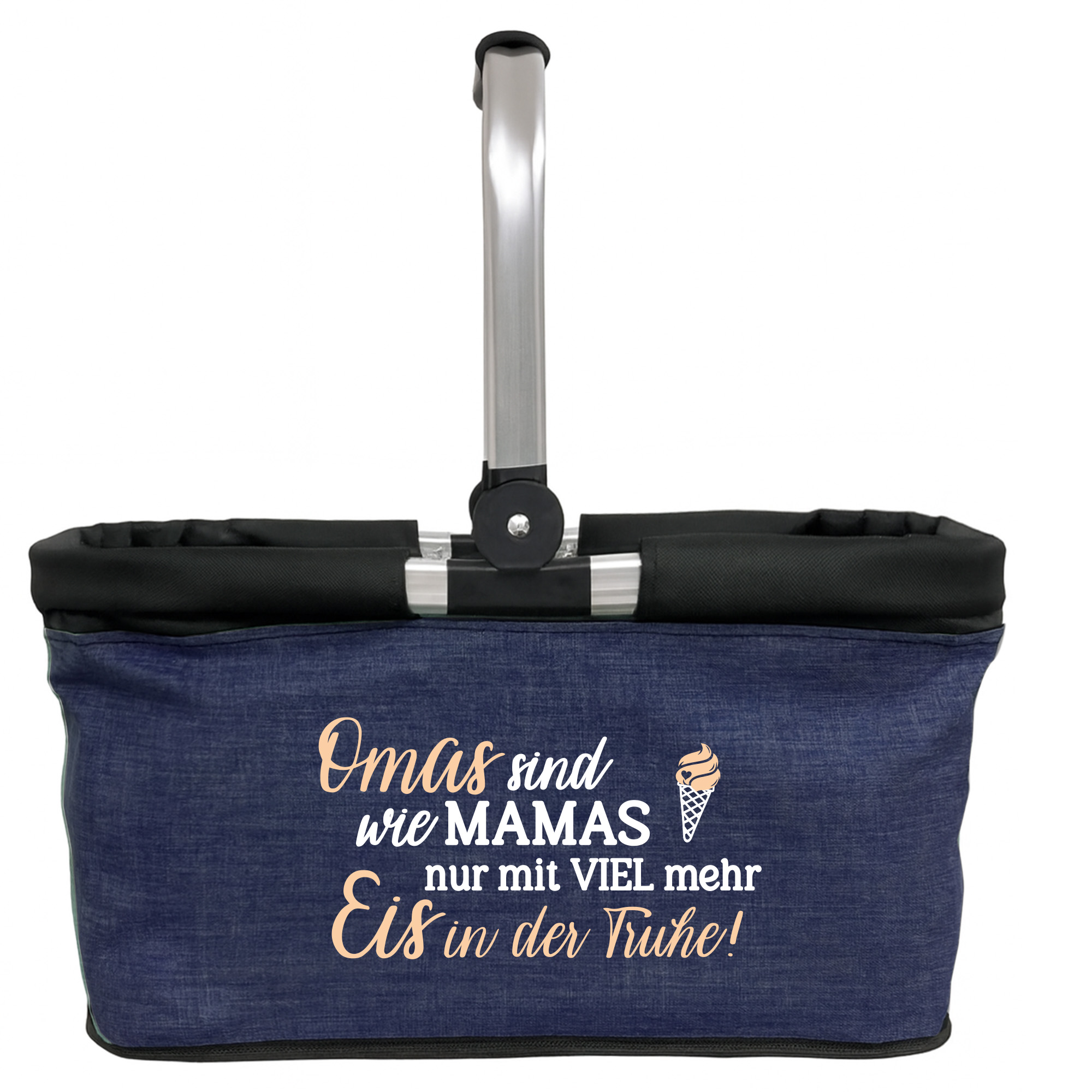 Produktbeschreibung "Personalisierter Einkaufskorb "Omas sind wie Mamas nur mit viel mehr Eis in der Tüte" Tragekorb Picknickkorb faltbar 20L "