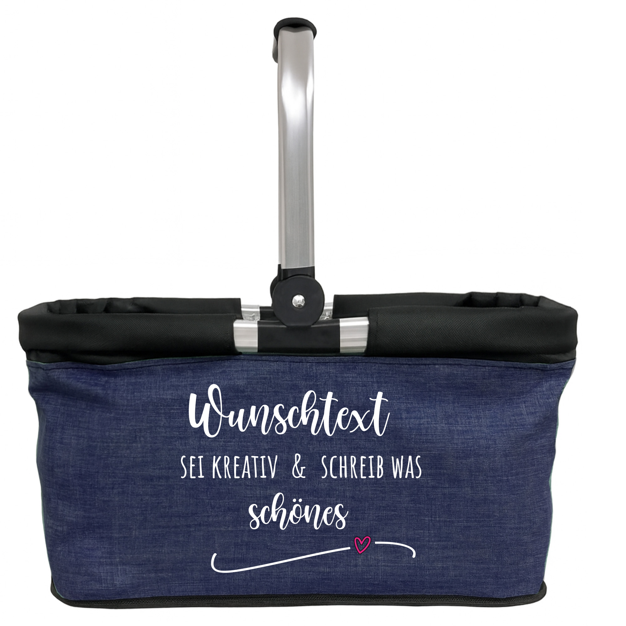 Personalisierter Einkaufskorb mit individuellem Text Design und Wunschtext Tragekorb Picknickkorb faltbar 20L