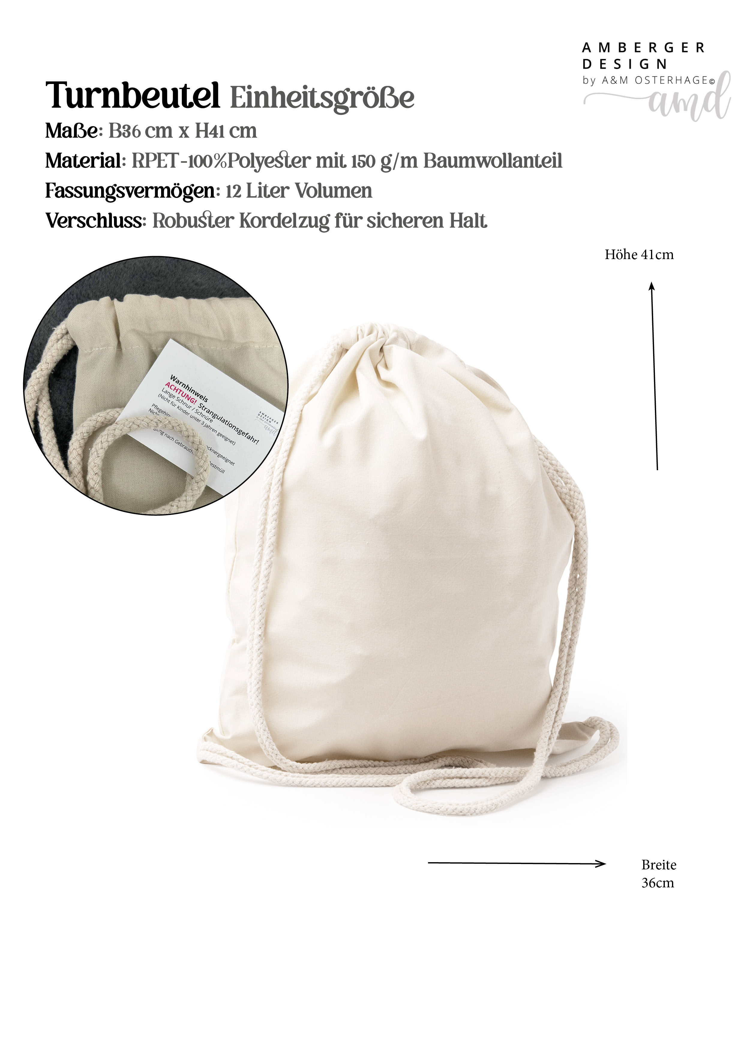 ✔ Verschluss: Sicherer Kordelzug für einfaches Öffnen & Schließen