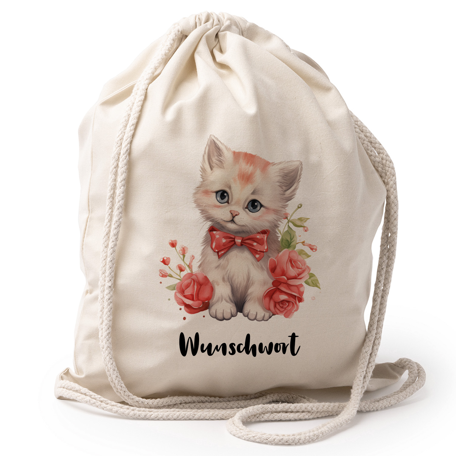 Turnbeutel Rucksack beige Nachhaltig Tasche Motiv: Katze personalisiert