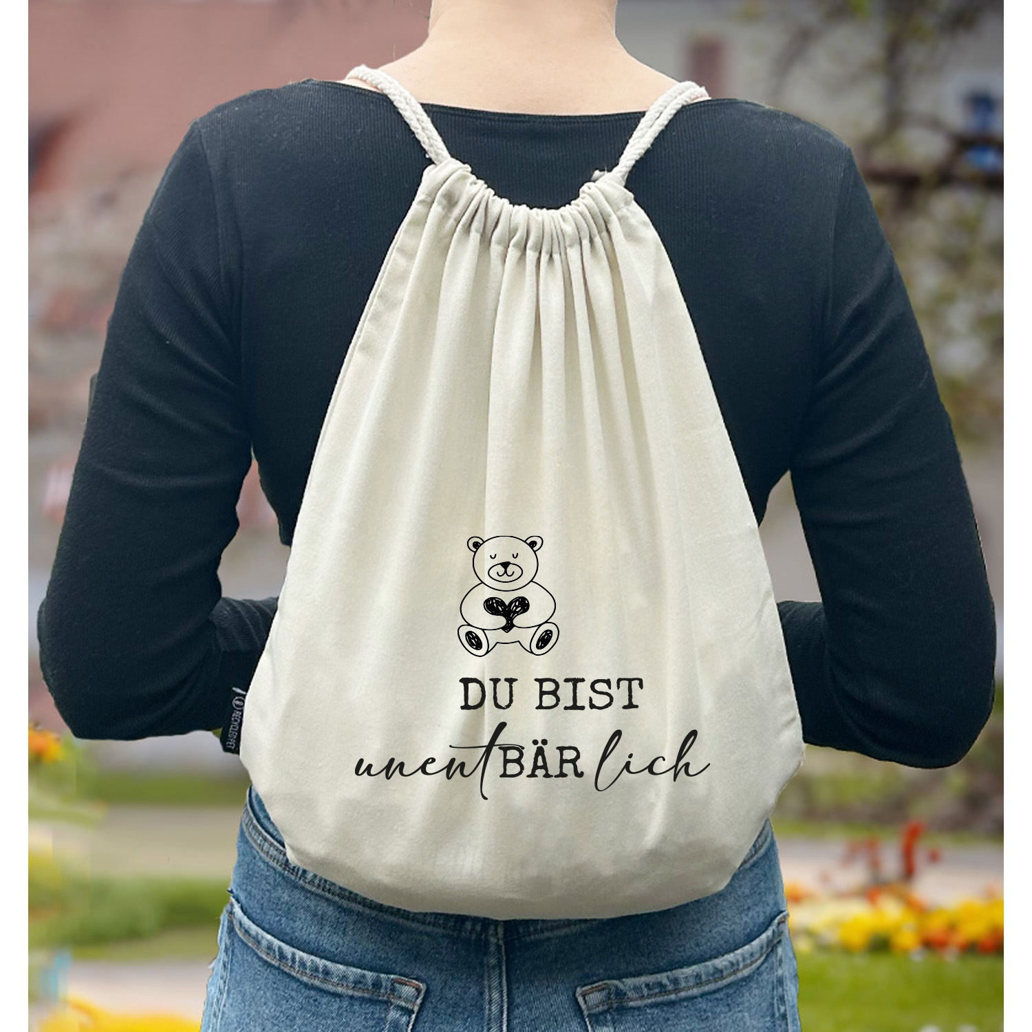 Turnbeutel Rucksack beige Nachhaltig Tasche Motiv: Unentbärlich personalisiert