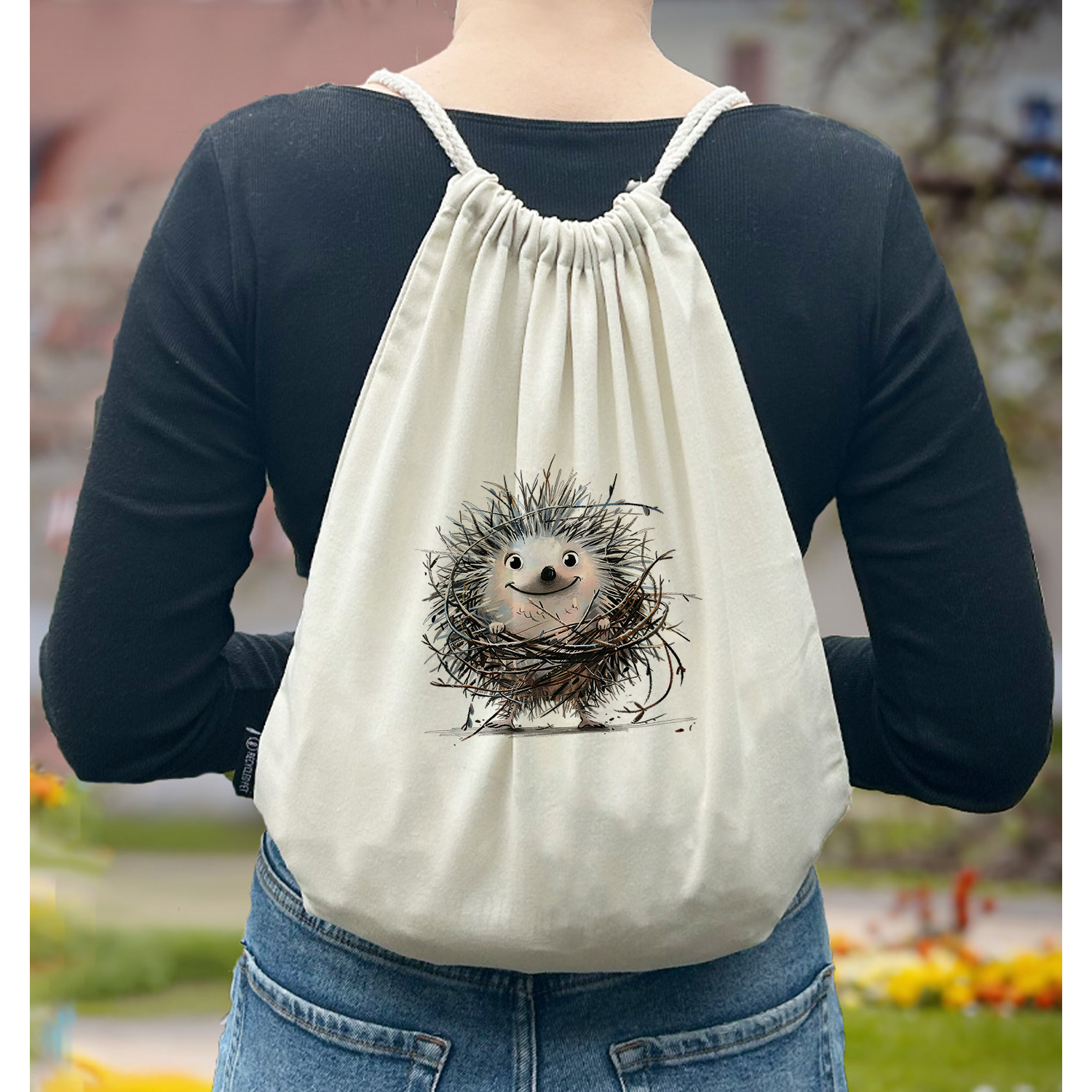 Turnbeutel Rucksack beige Nachhaltig Tasche Motivl Igel personalisiert
