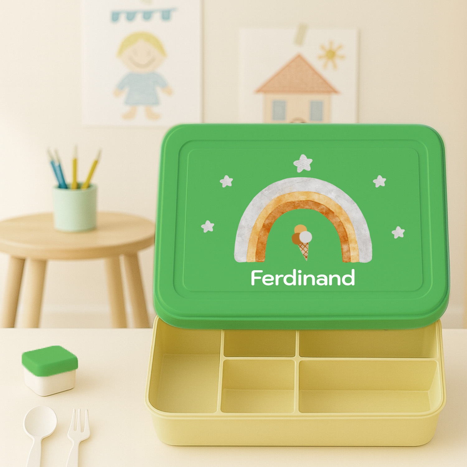 Diese personalisierte Kinder-Brotbox begleitet dein Kind durch den Tag – liebevoll gestaltet, praktisch organisiert und mit dem eigenen Namen ein echter Schatz im Rucksack. So schmeckt die Pause noch besser und sorgt für ein glückliches Lächeln!