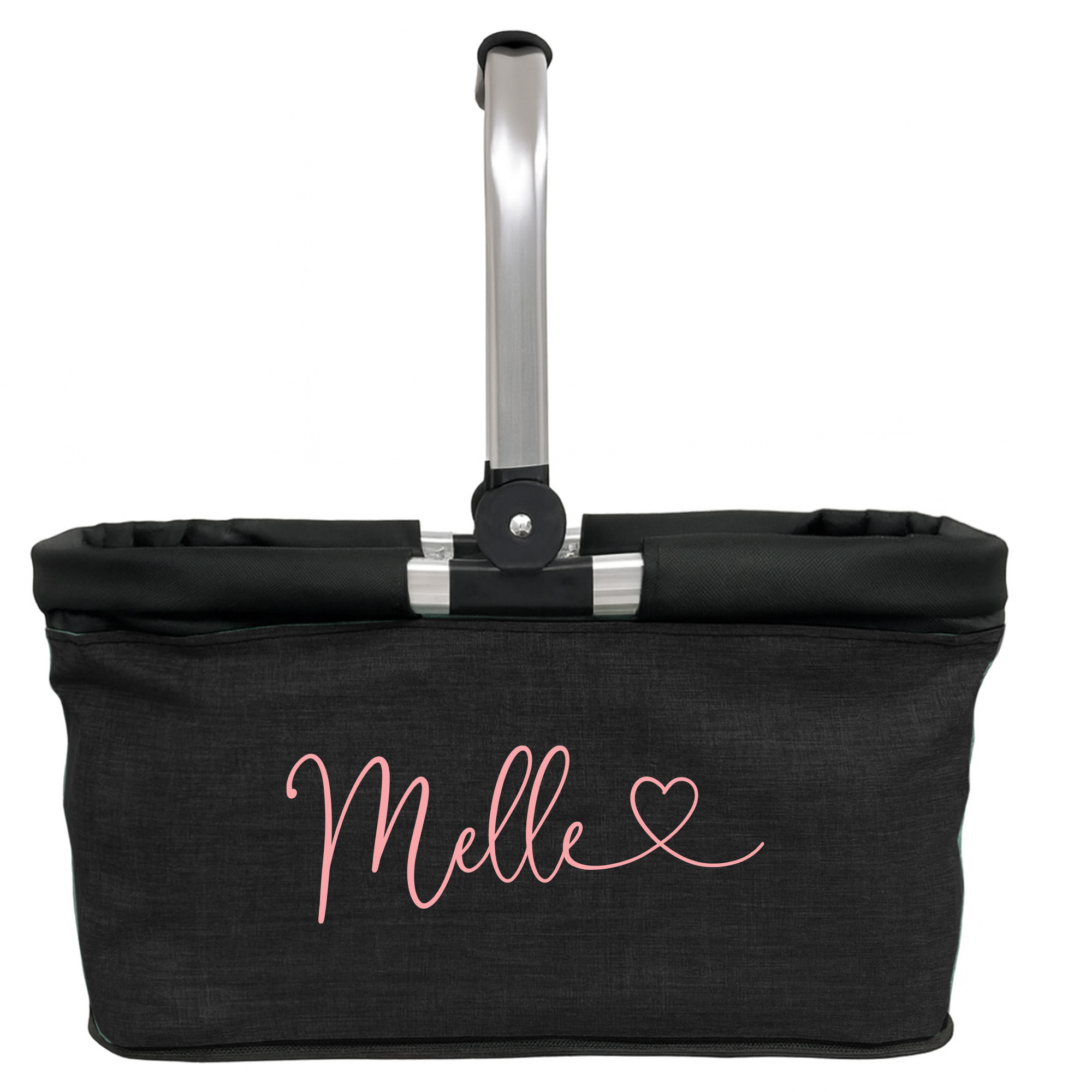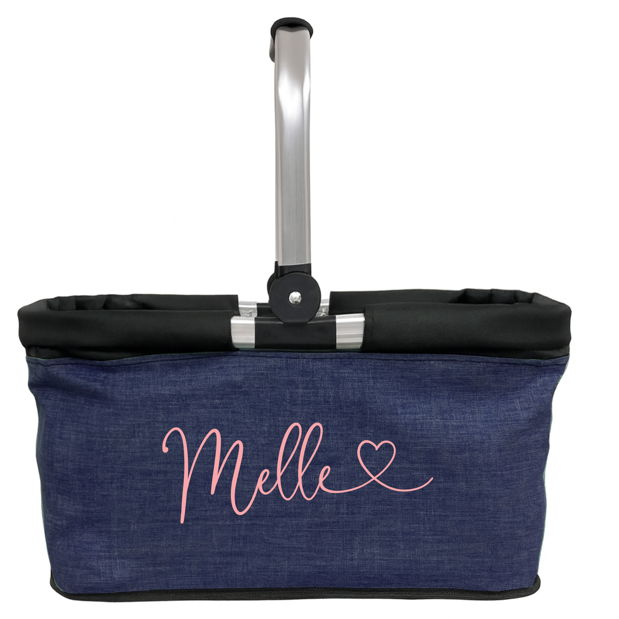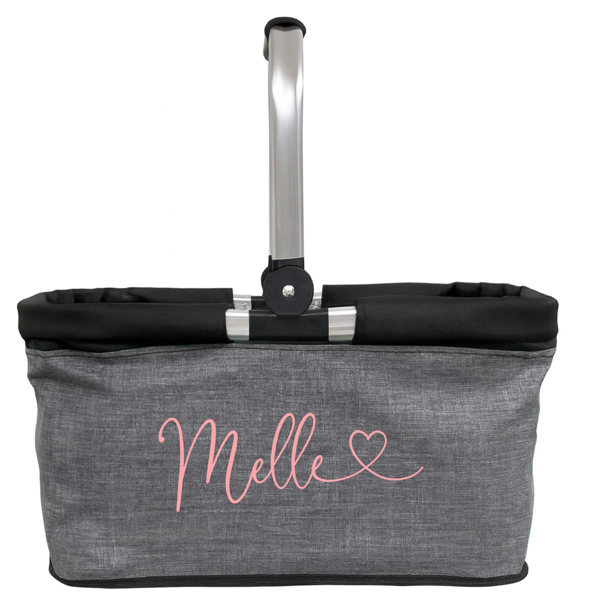 Personalisierter Einkaufskorb Name Herzschwung Tragekorb Picknickkorb faltbar 20L